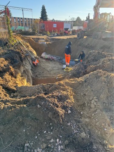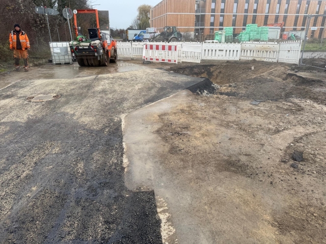 Im Jahr 2016 wurde mit dem ersten Bauabschnitt zur Erschließung des Gebietes begonnen. Diese umfasst die Herstellung neuer Entwässerungskanäle, Versorgungsleitungen und Infrastruktur für Strom, Gas, Wasser und Breitbandversorgung sowie Straßen und Gehwege.