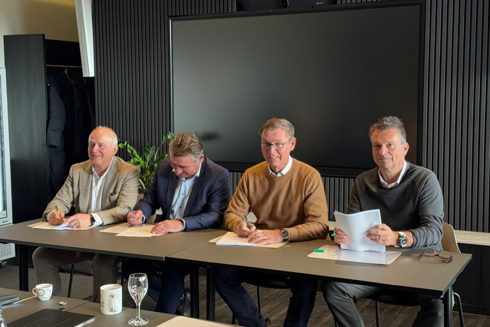 Von links nach rechts: Franz Ringhoffer (Geschäftsführer der GVG der Stadt Mainz), Günter Beck (Sport- und Finanzderzernent), Stefan Hofmann (Vereins- und Vorstandsvorsitzender Mainz 05) und Christian Heidel (Vorstand Sport & Kommunikation Mainz 05)
